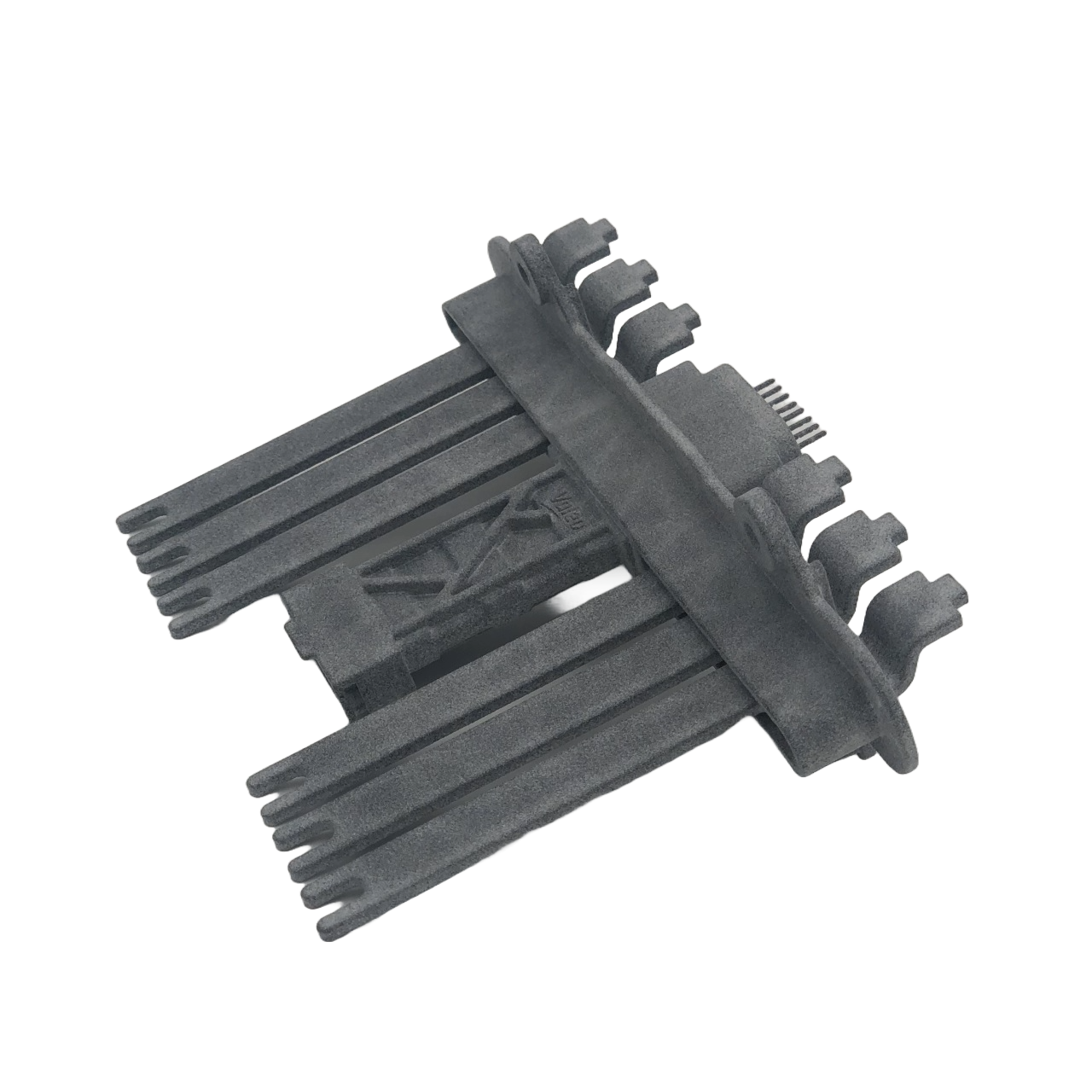 Le frittage laser de poudre (SLS) ne requiert aucun support, offrant une liberté totale de conception. Cette technologie permet de réaliser des pièces alliant haute résistance mécanique et tenue thermique, idéales pour des applications exigeantes.